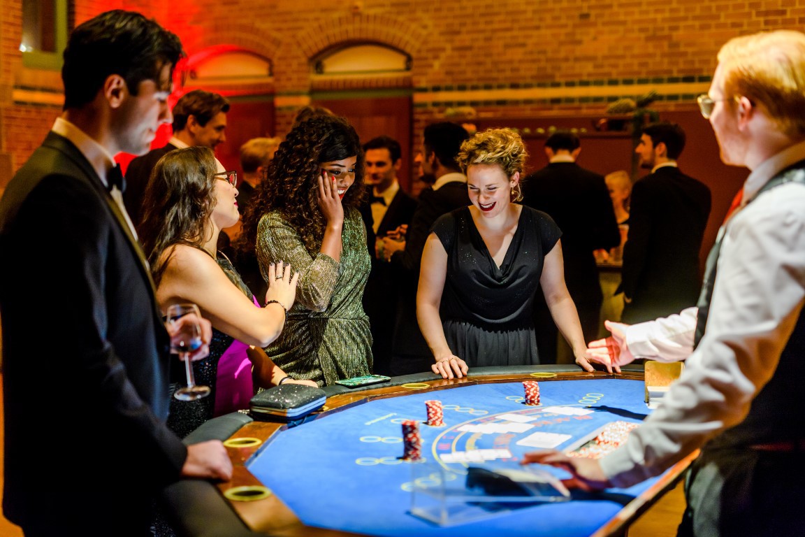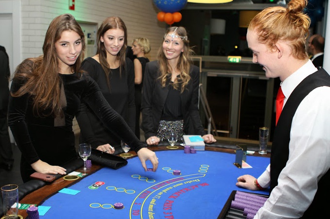 Tip: vergeet niet om een stijlvol casino decor (2m breed x 3m hoog) te bestellen voor achter de blackjack tafel. Deze huurt u voor €60 per stuk.